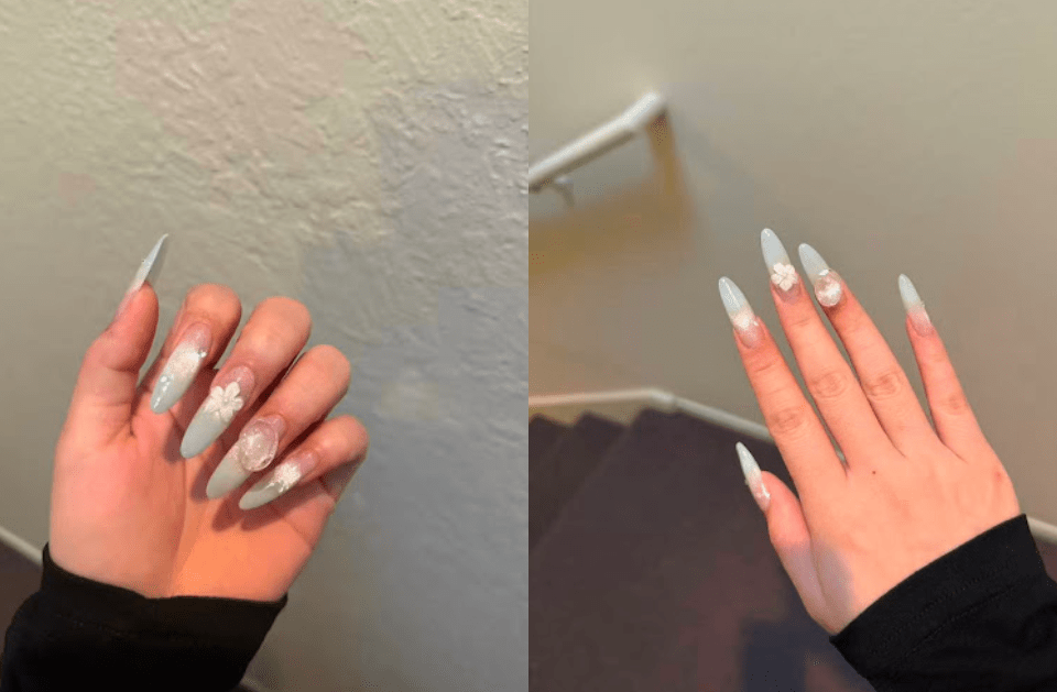 "Really happy with my nails! They are super detailed and took time to get everything just right. It's been over two weeks and they still look amazing--no chips, still shiny, and holding up great. Definitely going back! "